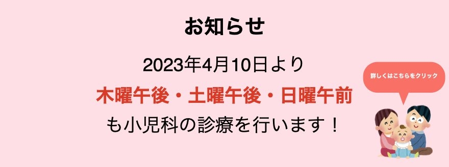 ★木曜日の午後の小児科一般診療は午後2時からとなります。